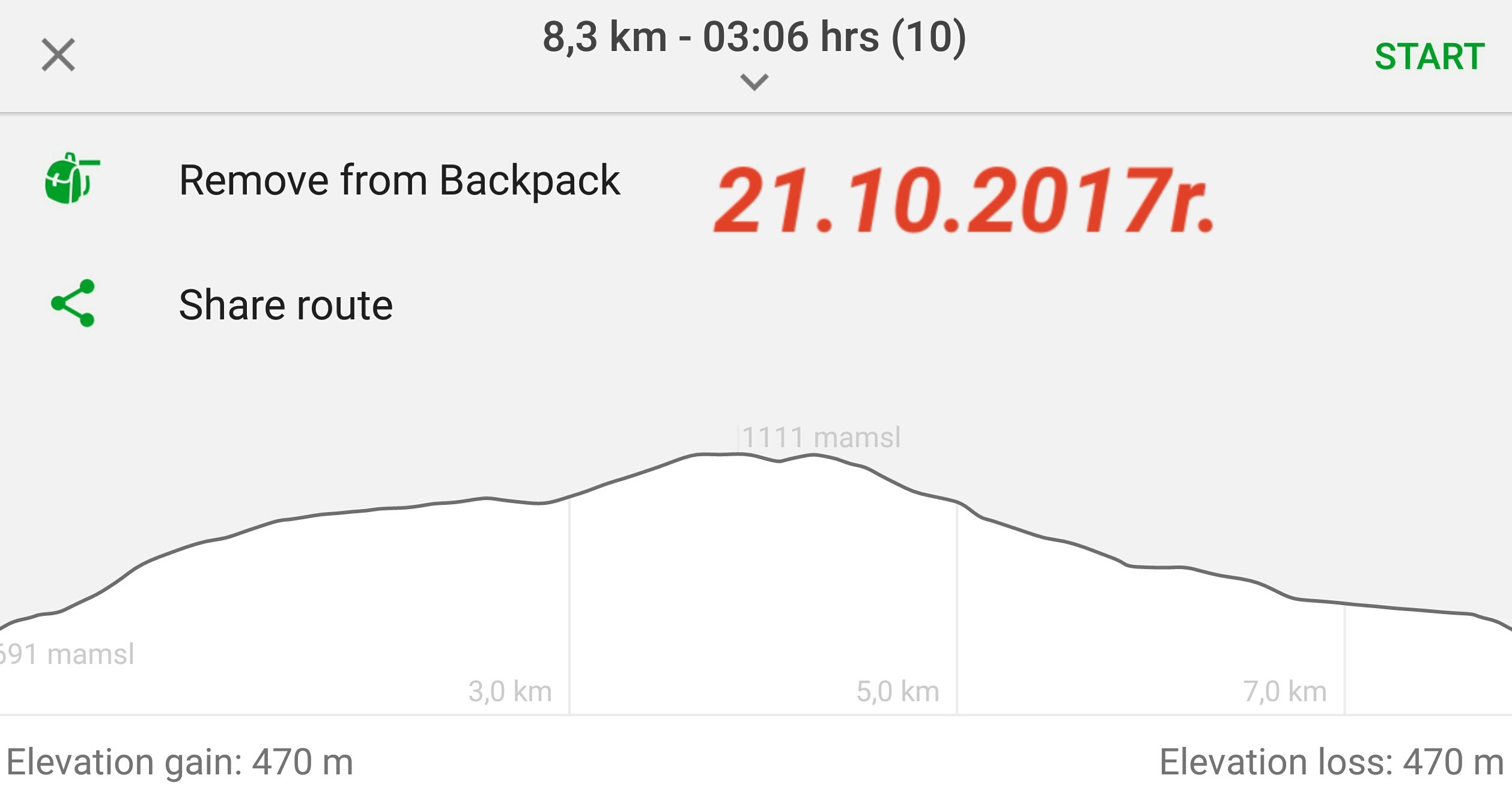Przewyższenie 868 m